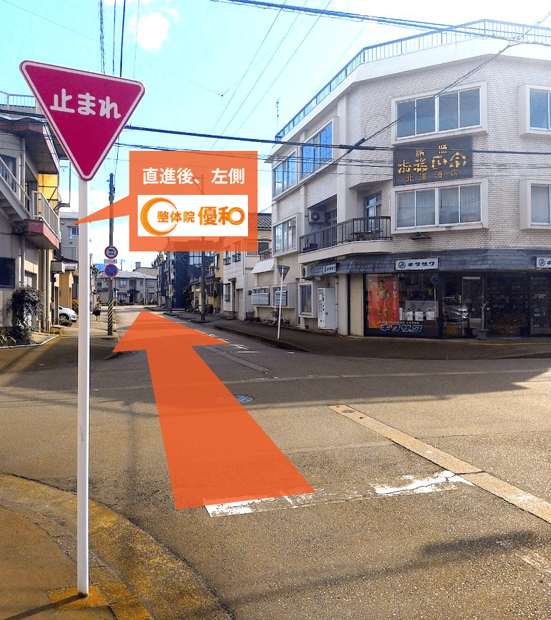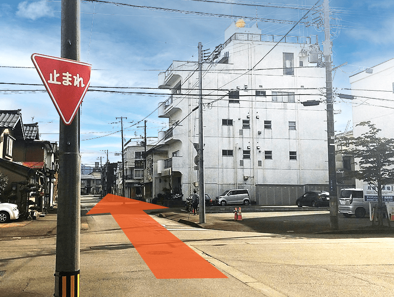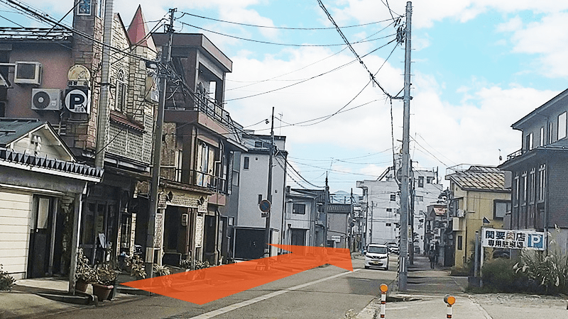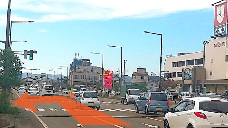 ①長岡駅を背にして大手大橋へ向かい2個手前の信号を左折します。
