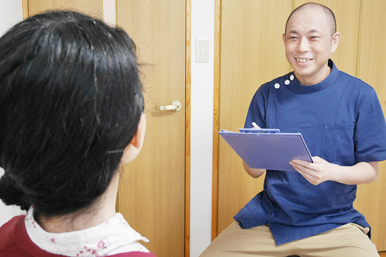 その後、お悩みの症状について「どこが、どのように、そしていつ頃から痛むのか」という点で詳しくお聞きしていきます。