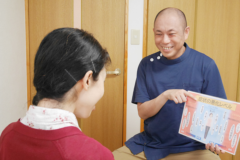 当院では「身体がどのような状態になっていて、なぜつらい症状を引き起こしているのか」など、症状についての正しい知識をわかりやすく丁寧に説明いたします。
