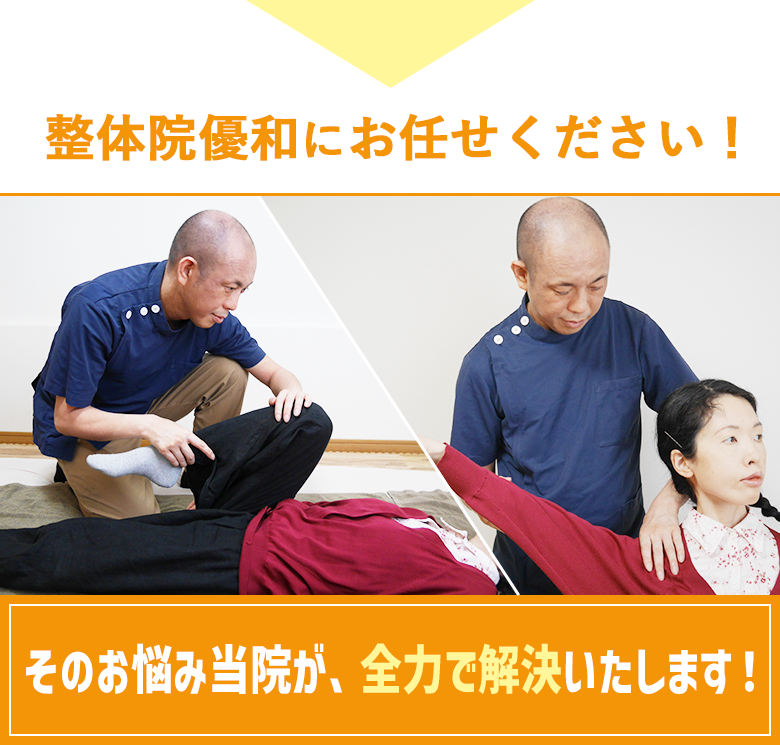 「整体院優和」に来院し、そのつらい身体の痛みや不調を根本改善しませんか?