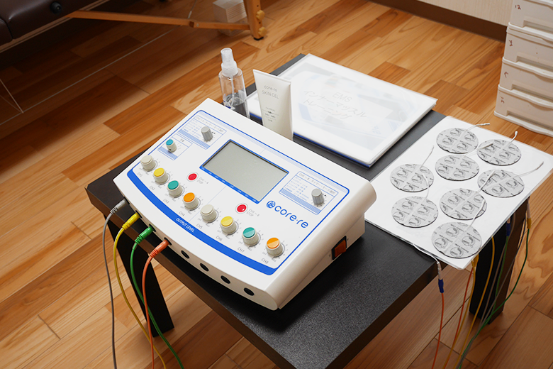 また、再発しにくい身体を目指すため、EMS(電気筋肉刺激)機器を用いて体幹・インナーマッスルを効率よく鍛えるサポートも行っています。高齢の方や運動が苦手な方でも安心して受けていただけます。